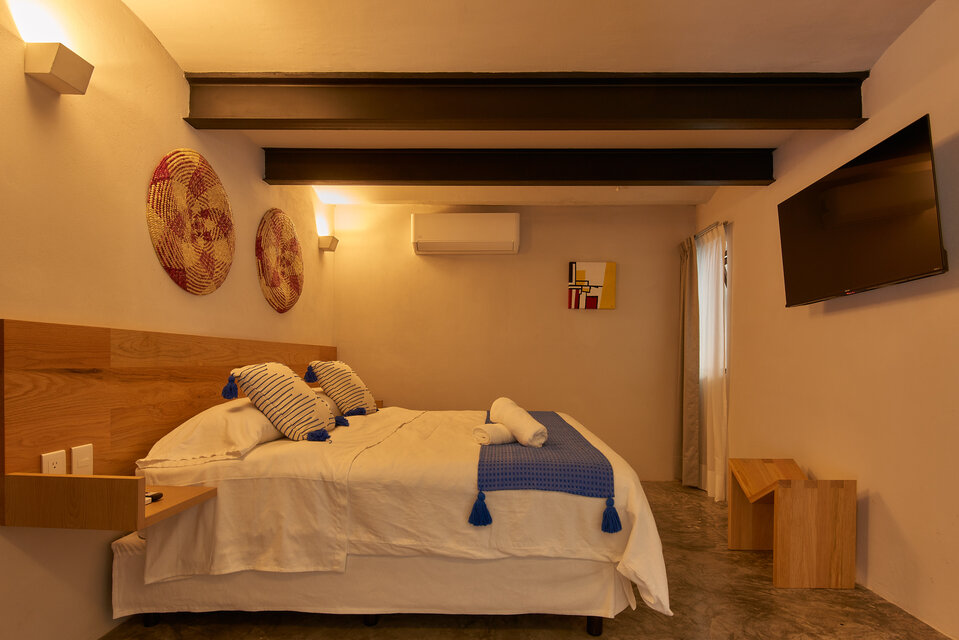 Bienvenido a MACEDONIO, ubicado en un complejo de departamentos boutique en el centro de la ciudad de Oaxaca. Nuestro espacioso loft privado ofrece 56 m2 de espacio habitable. Cuenta con comedor, cocina y sala de estar con sofá cama en la planta baja. El nivel mezzanine tiene un dormitorio con cama King size y baño privado. Las comodidades incluyen dos pantallas de TV 4K de 43 pulgadas y Wi-Fi. Explore atracciones cercanas como el Templo de Santo Domingo y disfrute de la terraza común en el segundo piso. Experimenta comodidad y estilo.
